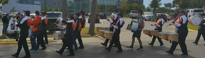 Because of the weather, the tailgating crowd may have been a bit smaller than normal. There is a “Bearcat Alley” where vendors and student groups tailgate. We were not able to get access to those spots. It had more traffic than the tailgate lot but not substantially more. Folks may just go right there. For us, it was great. We had plenty of room for an expansive breakfast menu and full bar complete with Irish coffees and mimosas. The SHS support staff even swung by and dropped off a trash barrel for us. We had plenty of room for cornhole and plenty of chairs. Not that it mattered though as most of our guests stood around shivering. The tailgate spot was right on the route of the Bearkat marching band and they stopped by and gave us (well the whole lot) a bit of a show. Undoubtedly, as the program grows, their approach to tailgating will change. I do hope they recognize that accessibility and convenience for the fans should take priority over whatever revenue they think they might be able to make on the lots. My experience with small programs that try to act like big programs in this area fail and fail miserably. They end up with half full lots and even less tailgating. There simply isn’t enough demand to support either exclusivity or substantial revenues. They should take a page from schools like Miami of Ohio and keep the tailgating both affordable and accessible.